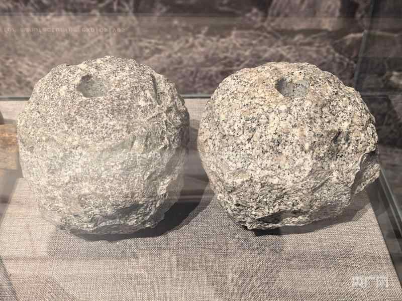 地雷战纪念馆馆藏石雷和制作炸药的石碾(央广网记者 刘佳音 摄)