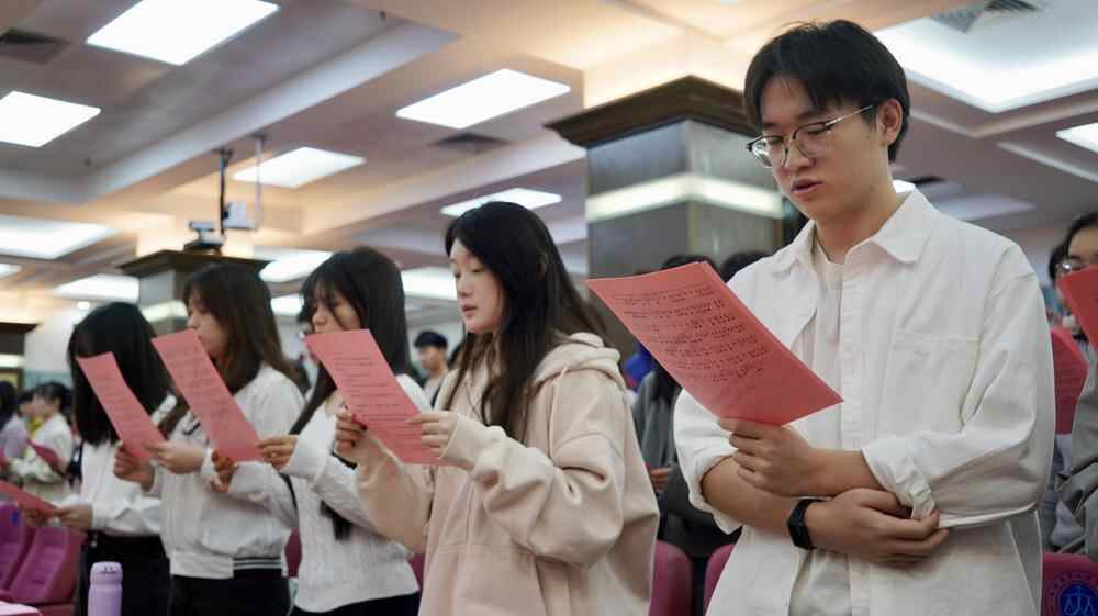 宪法晨读现场,180名师生收看了由教育部举办的宪法晨读直播,同步齐诵国家根本制度、公民权利义务等宪法核心条款,合唱《宪法伴我们成长》,弘扬宪法权威,坚定法治信仰。