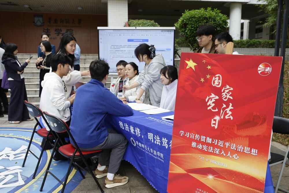 12月4日是第十二个国家宪法日,当天,华南师范大学广州校区大学城校园开启宪法宣传周活动,举行了宪法晨读、小包公赋能公益普法咨询活动。