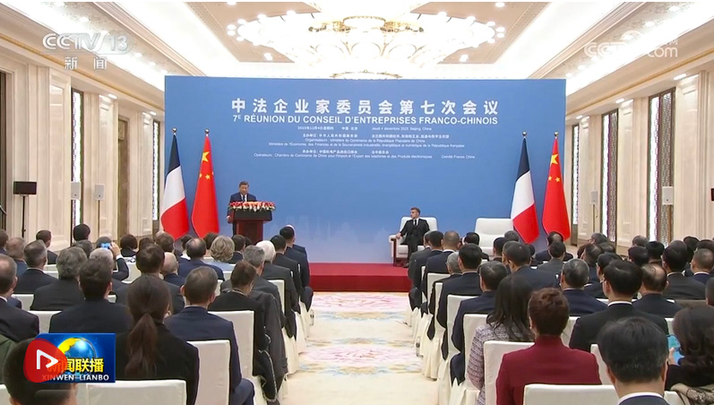 12月4日中午,国家主席习近平在北京同法国总统马克龙共同出席中法企业家委员会第七次会议闭幕式并致辞。