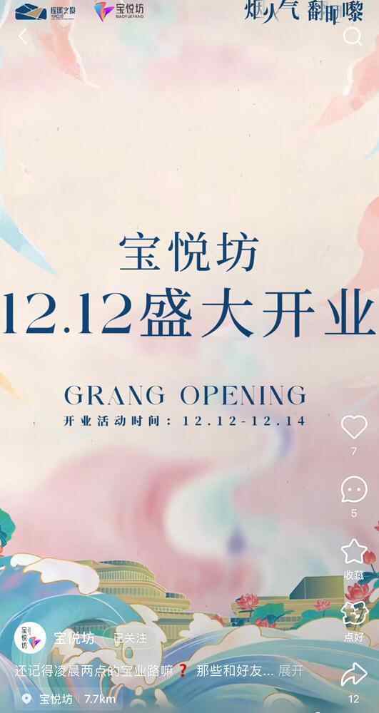 12月4日,位于广州市海珠区宝业路的文商旅综合体“宝悦坊”,在网络社交媒体上发布内容,宣布项目将于12月12日开业。