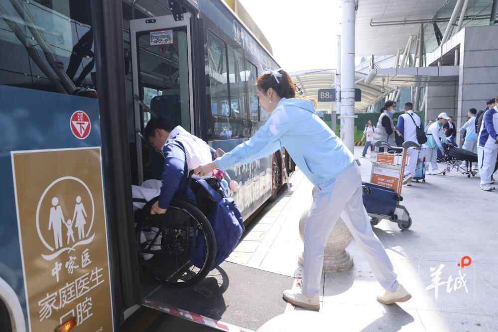 为做好轮椅运动员服务保障,团队提前调配无障碍车辆和专业设备,对廊桥、电梯、通道等区域进行全面检查,确保无障碍通道设施完好可用。飞机抵达白云机场前,团队将运动员托运的轮椅运送至舱门口,并安排工作人员携带机上轮椅及备用普通轮椅在舱门口等候。接到运动员后,协助他们换乘自有轮椅,全程提供“舱门对车门”无缝转运服务,直达指定上车点。