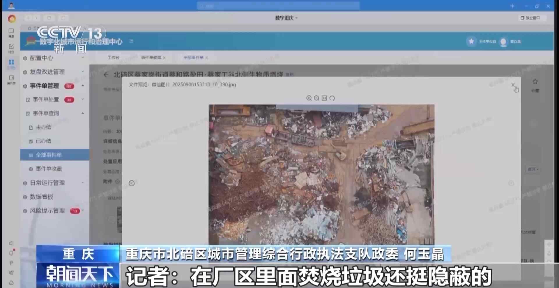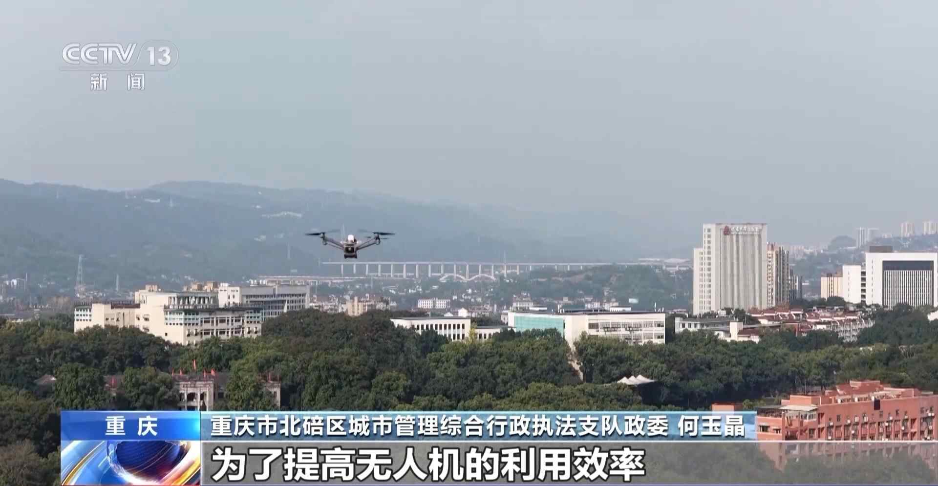 重庆市北碚区城市管理综合行政执法支队政委 何玉晶:对,如果不是通过高空视角的话,是没有办法去发现的。为了提高无人机的利用效率,我们搭载了20多种AI(人工智能)算法,识别率基本上能够达到80%以上。