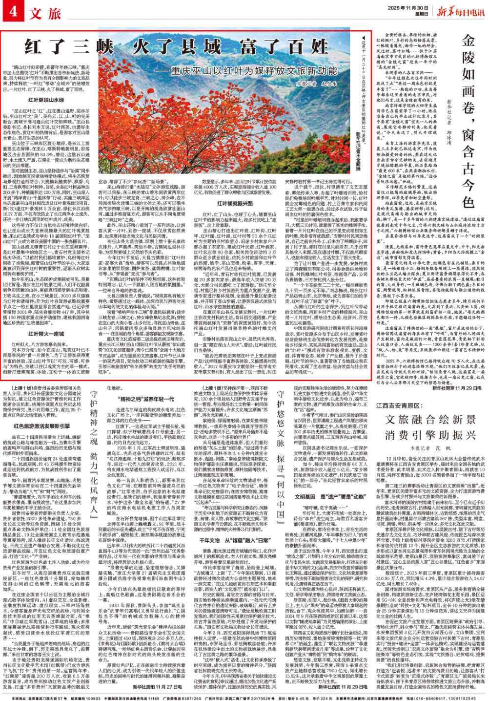 “巫山红叶之‘红’,红在漫山遍野、层林尽染。巫山红叶之‘美’,美在云、江、山、叶的完美融合,高峡平湖与遍山红叶交相辉映。”巫山县委副书记、县长刘本万说,红叶再美,也需好生态作底色。赏红叶的热情背后,是游客对巫山绿水青山、良好生态的认可。