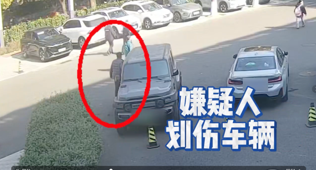 得知这个关键信息后,民警心里有了方向:“划车这事儿,十有八九跟之前的口角有关!”于是调取停车场及周边公共视频展开追踪。视频画面清晰显示,一男子在李先生车辆周边徘徊溜达了很长时间,手里还拿着什么东西在车身上划,一看就不对劲。通过调查,民警很快锁定了嫌疑人郭某,在郭某住处将其抓获。