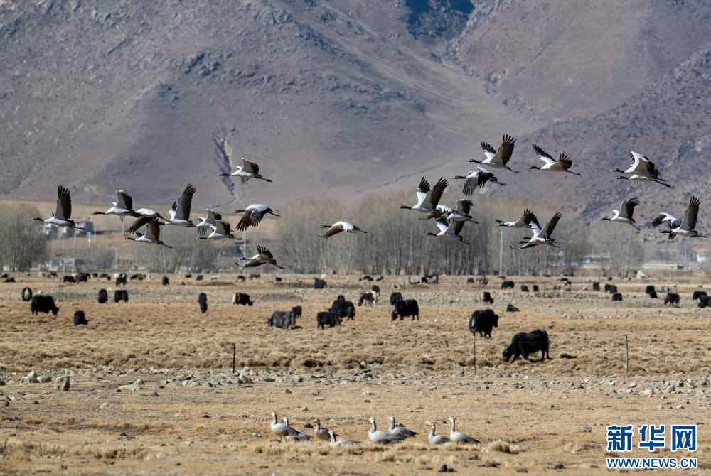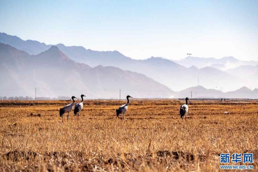 这是11月26日在西藏拉萨市林周县境内拍摄的黑颈鹤。新华网 旦增努布 摄