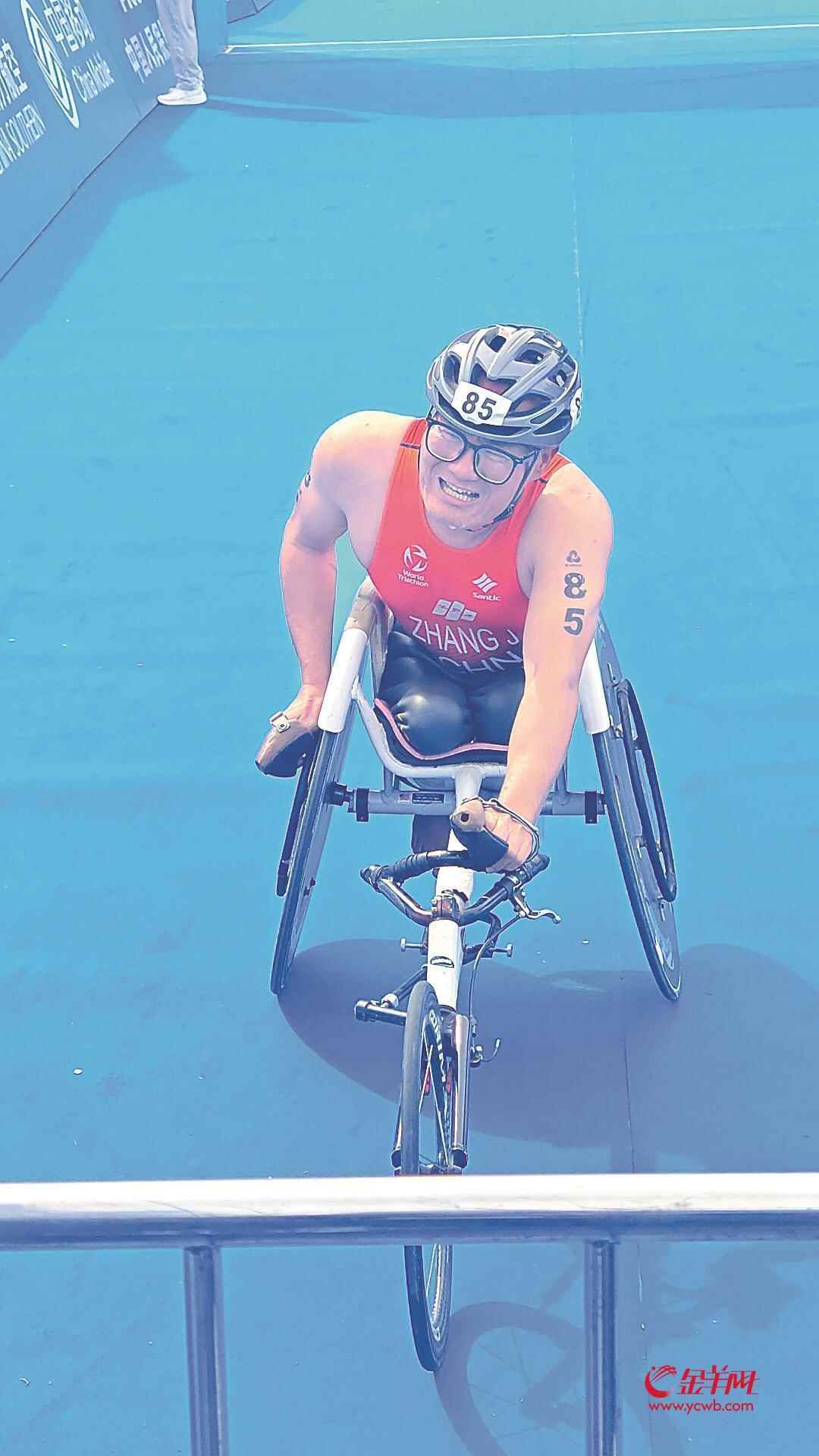 11月27日,残特奥会铁人三项比赛在肇庆开赛,这是我国首次设立残疾人铁人三项比赛,也是残特奥会历史上首次设立。在134名参赛的残疾人运动员中,张健是年龄最大的那个。他是马拉松圈内知名的轮椅跑者,这也是他的首个铁三比赛。44岁的他说:“永远不要给自己设限,人生无限可能”。