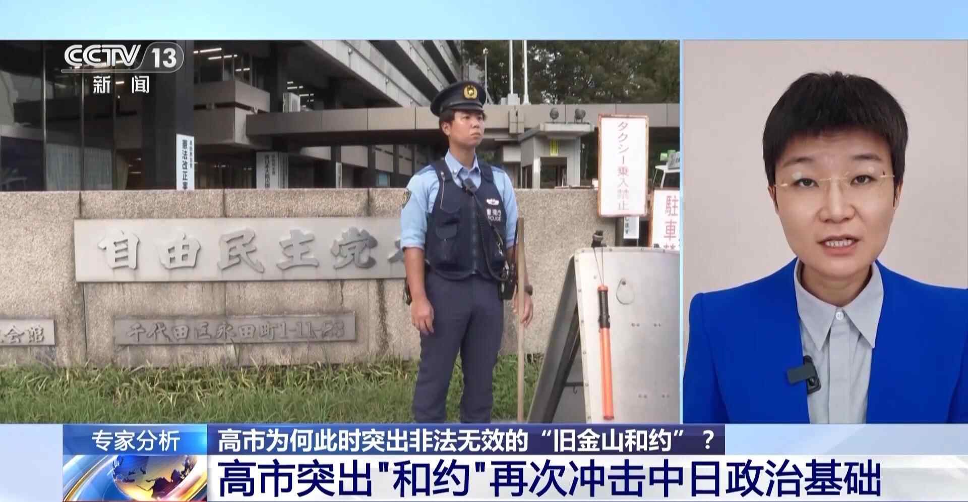 特约评论员 苏晓晖:“旧金山和约”之所以非法无效是因为此前《开罗宣言》《波茨坦公告》以及《日本投降条款》等确认了中国对台湾的主权。同时,“旧金山和约”的签署也违反了《联合国家宣言》的规定,也就是说“旧金山和约”不应该也不能够背着中国处置中国的领土。而近日日本首相高市早苗再次谈及“旧金山和约”,试图凸显这个“和约”,其实是再次对中日关系政治基础进行了冲击。中日之间达成的四个重要的文件是中日关系的政治基础,日本非常清楚在一个中国原则上,自己作出的重要的承诺和四个政治文件对于台湾问题的明确规定,而此时高市绝口不提四个政治文件,不愿意重申四个政治文件当中的关键内容,反而再提“旧金山和约”,这样的做法,既是对战后规则的冲击,也是对中日之间达成重要共识的再次违背。所以,高市本人的做法是错上加错。