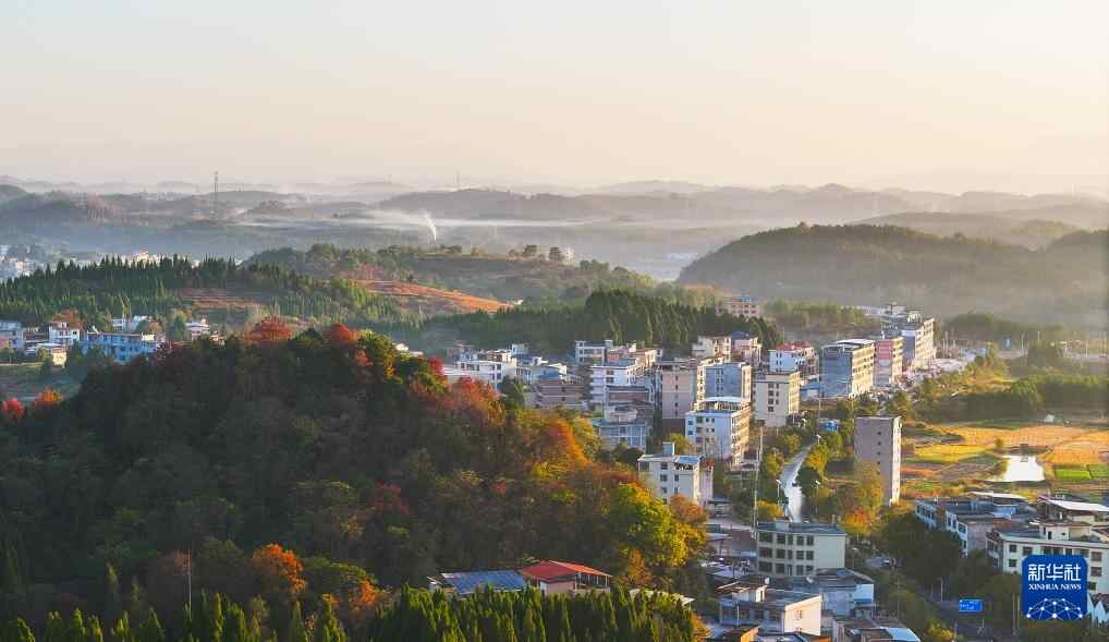11月28日拍摄的湖南省永州市新田县中山街道晨景(无人机照片)。