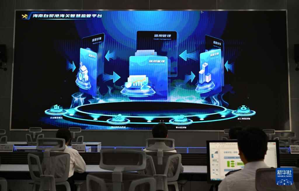 这是位于海口海关业务运行监控中心的海南自贸港海关智慧监管平台大屏幕(11月27日摄)。