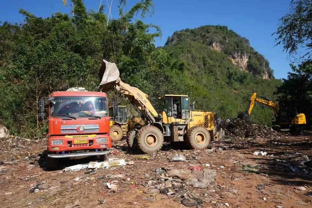 11月29日,当地调配专业人员和机械设备开展垃圾清运工作