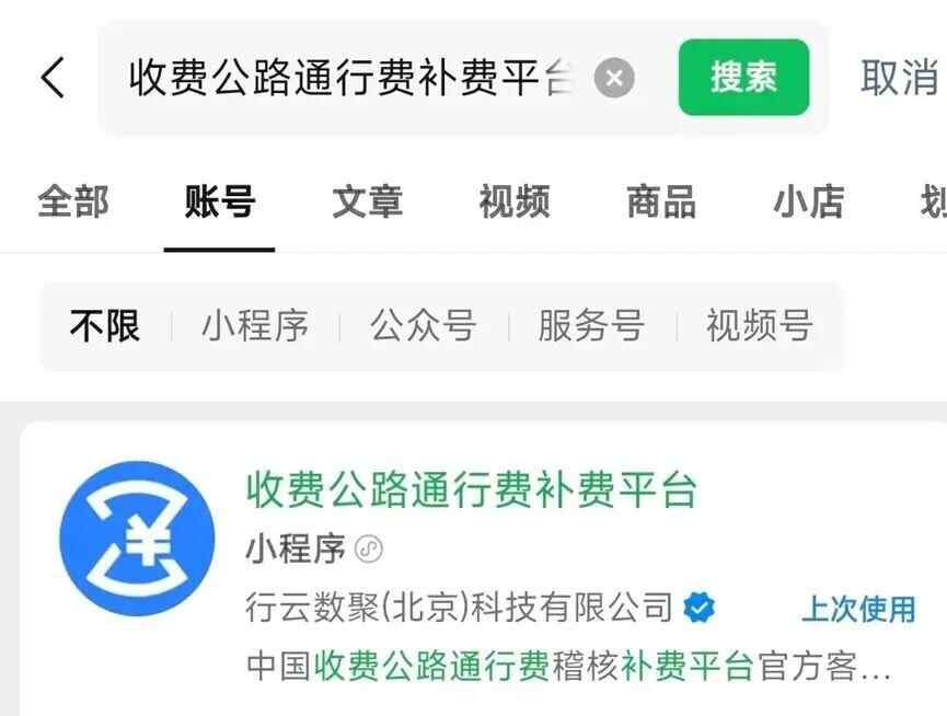 应使用收费公路通行费补费平台