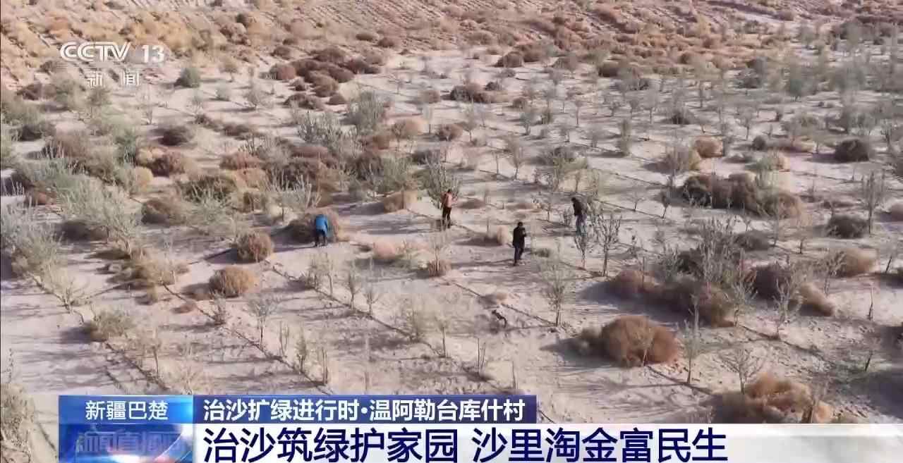 从“沙进人退”到“人进沙退”,再到“沙里淘金”,凭着埋头苦干的汗水与不断探索的勇气,温阿勒台库什村的村民在无垠的黄沙里,正绘就着家园的绿色生机与生活的金色丰收。
