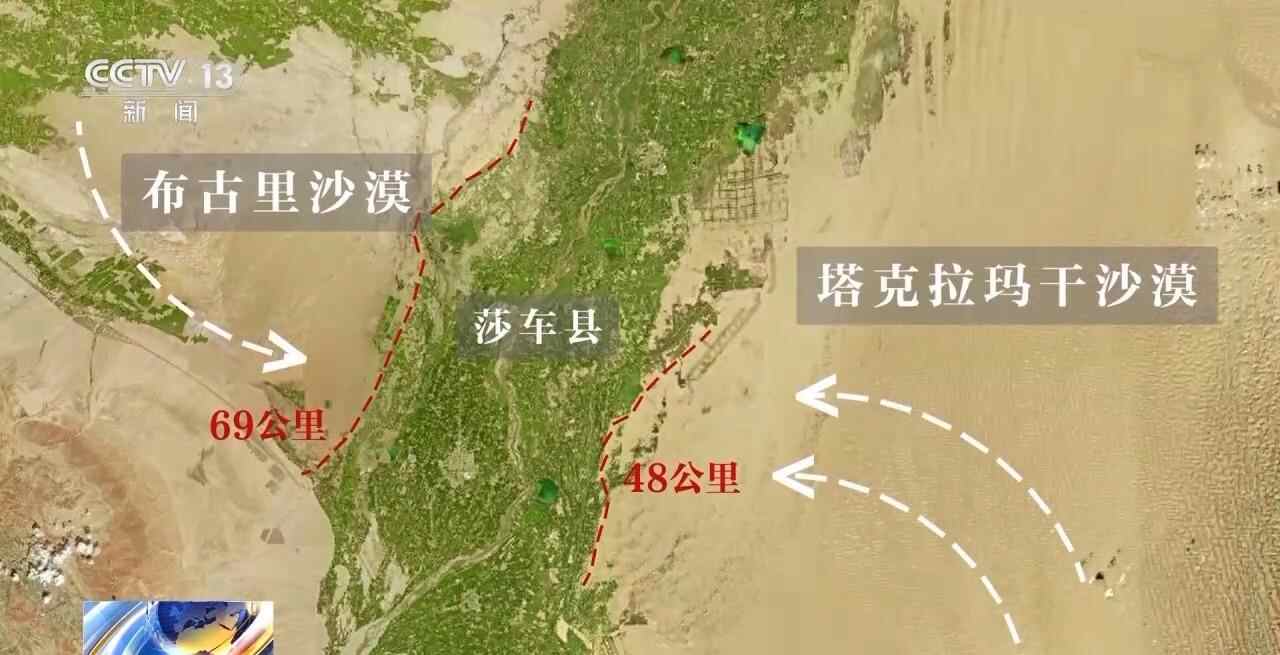 莎车县东连48公里的塔克拉玛干沙漠,西连69公里的布古里沙漠,两大沙漠如同两个巨型风口向县城输沙,摆在当地面前的是“双锁边”任务。