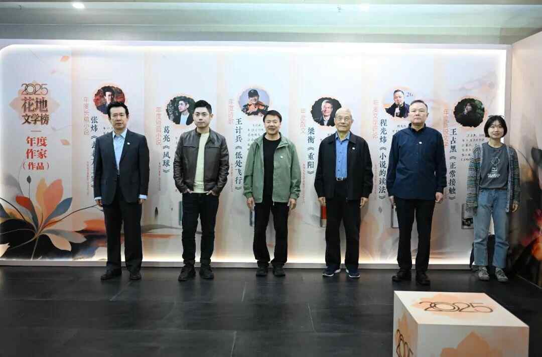 2025花地文学榜年度作家(作品)获得者合影留念(左起):张炜、葛亮、王计兵、梁衡、程光炜、王占黑
