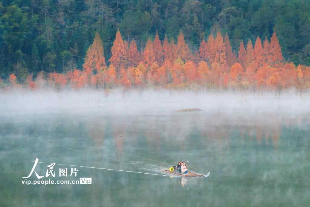 2025年11月27日,安徽省宁国市方塘乡落羽杉湿地公园晨雾缥缈,美不胜收。张明伟摄(人民图片网)