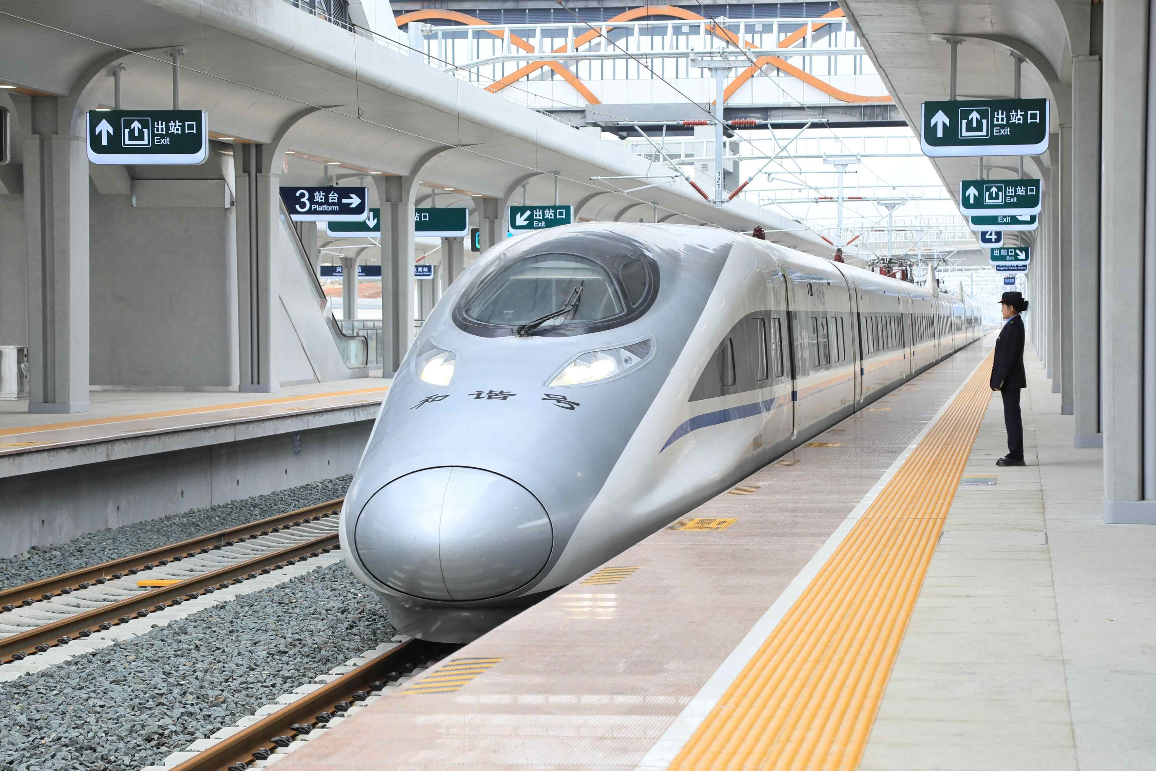 盘兴高铁试运行列车驶入兴义南站