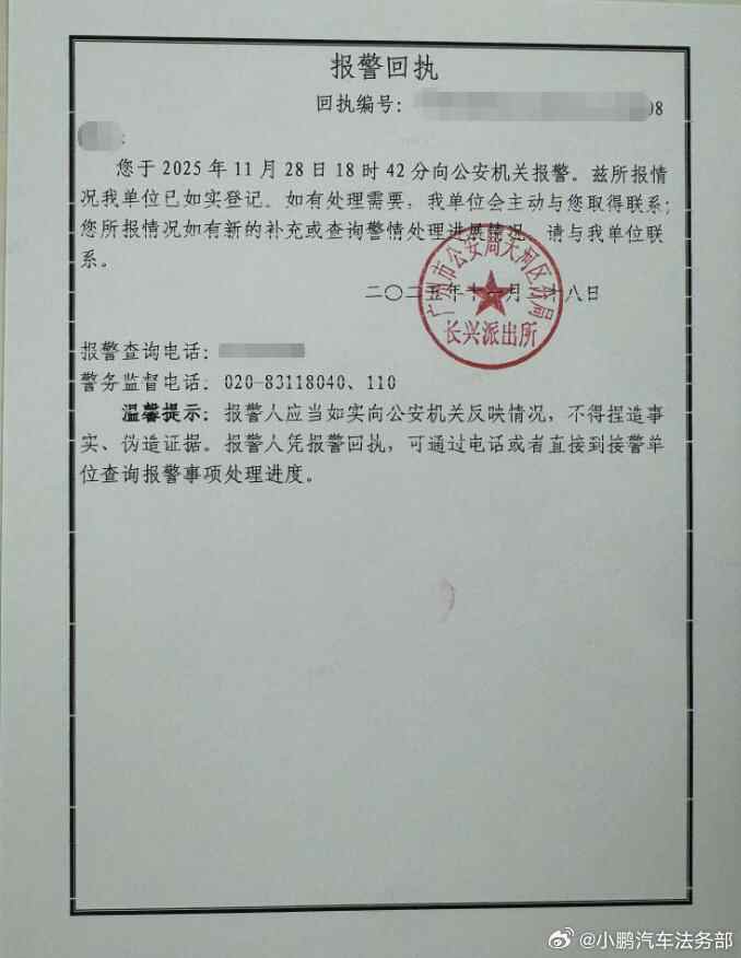 11月28日,小鹏汽车法务部发文:
