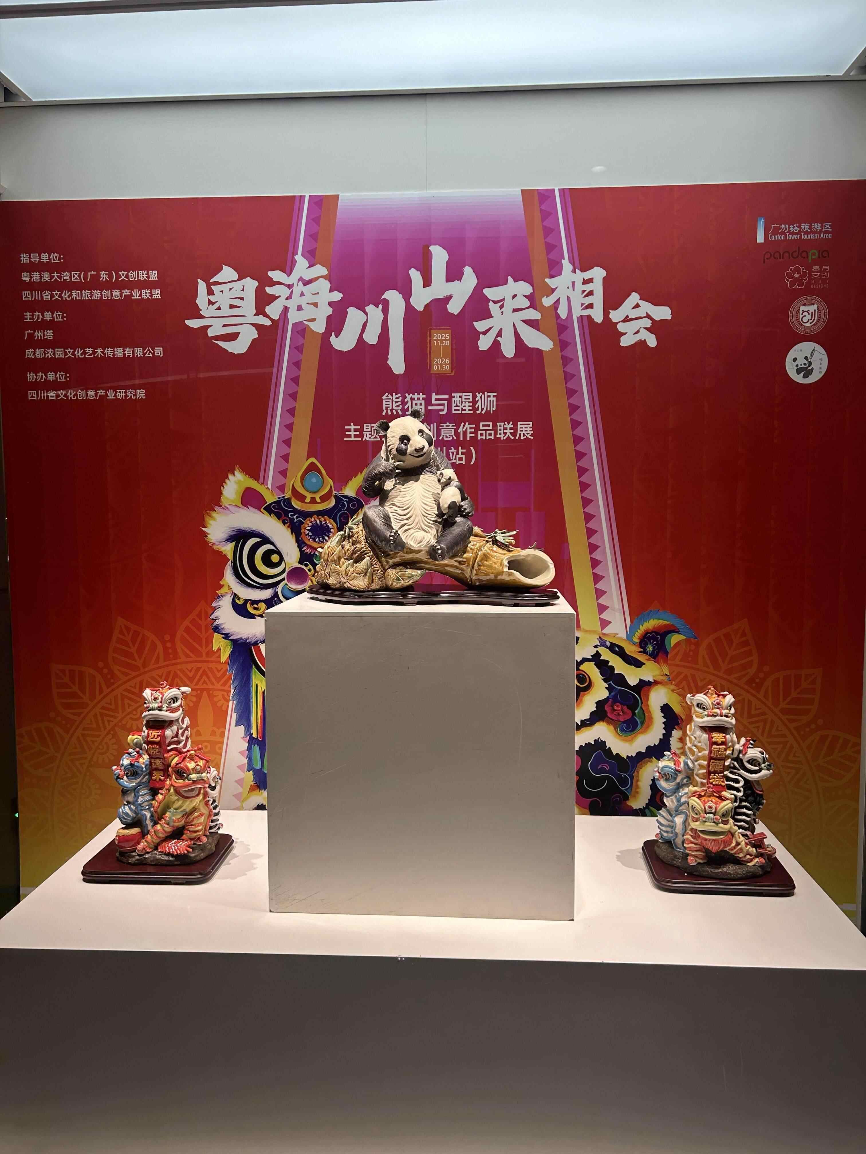当憨萌熊猫遇上威猛醒狮,会产生怎么样的碰撞?11月28日,《粤海川山来相会——熊猫与醒狮主题文化创意作品联展》在广州塔首层环形通道开幕。来自四川与广东的百余件文创精品跨越山海,展开一场跨越地域的文化对话。