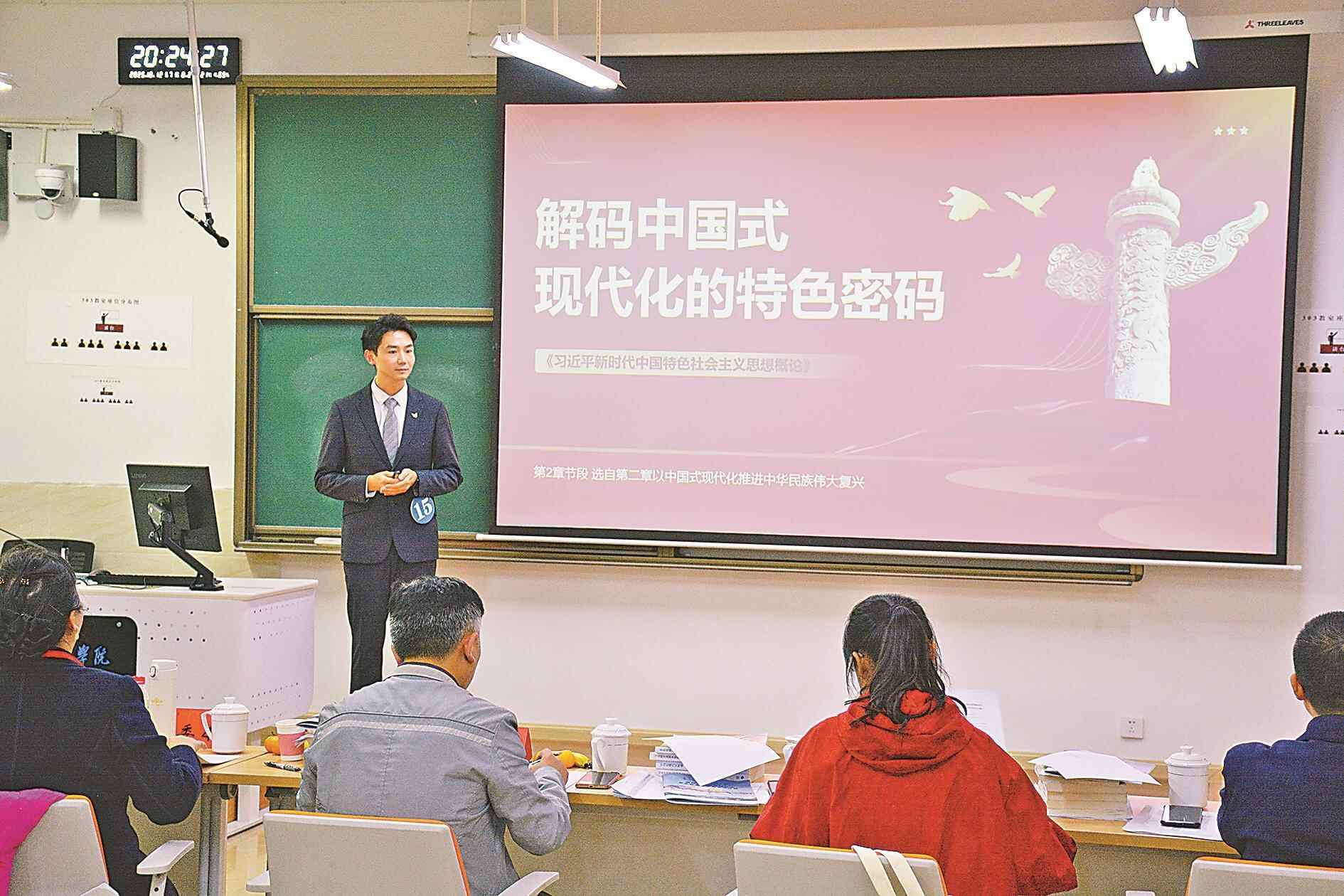 备赛的收获,最终都反哺了日常教学。如今,即便没有PPT,韩谦也能流畅讲完一整堂课。“脑海里有完整的知识框架和思维导图。”更让他欣慰的是,学生的反馈越来越积极:有学生在课后主动探讨“中国式现代化与西方现代化的对比”,有学生把课堂学到的“矛盾分析方法”用在了毕业论文里。“比赛不是终点,而是让我更懂怎么上好思政课的起点。”韩谦说。