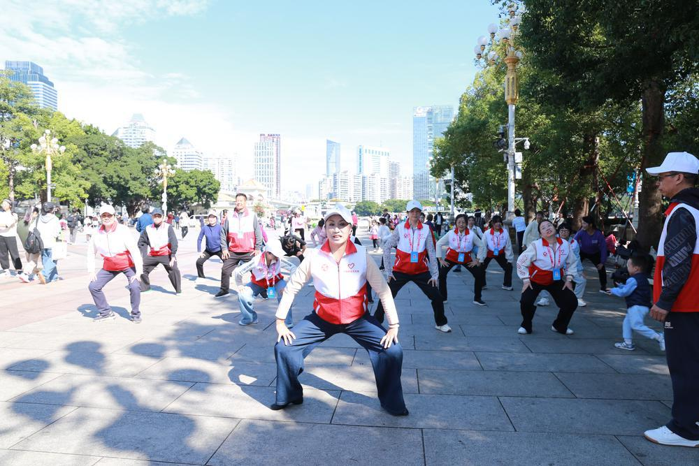 据悉,本次活动由广州市海珠区委组织部、区委宣传部、区委社会工作部指导,区直属机关工作委员会、区文明办、区文广旅体局、区总工会、团区委、区妇联、滨江街道主办。活动在《气势如虹》音乐所带来的全运助威操中拉开序幕,表演团队用活力舞姿瞬间点燃全场热情。随着音乐的律动,市民观众也跟着伸展、扩胸、踢腿,感受全民健身跃动的活力脉搏。