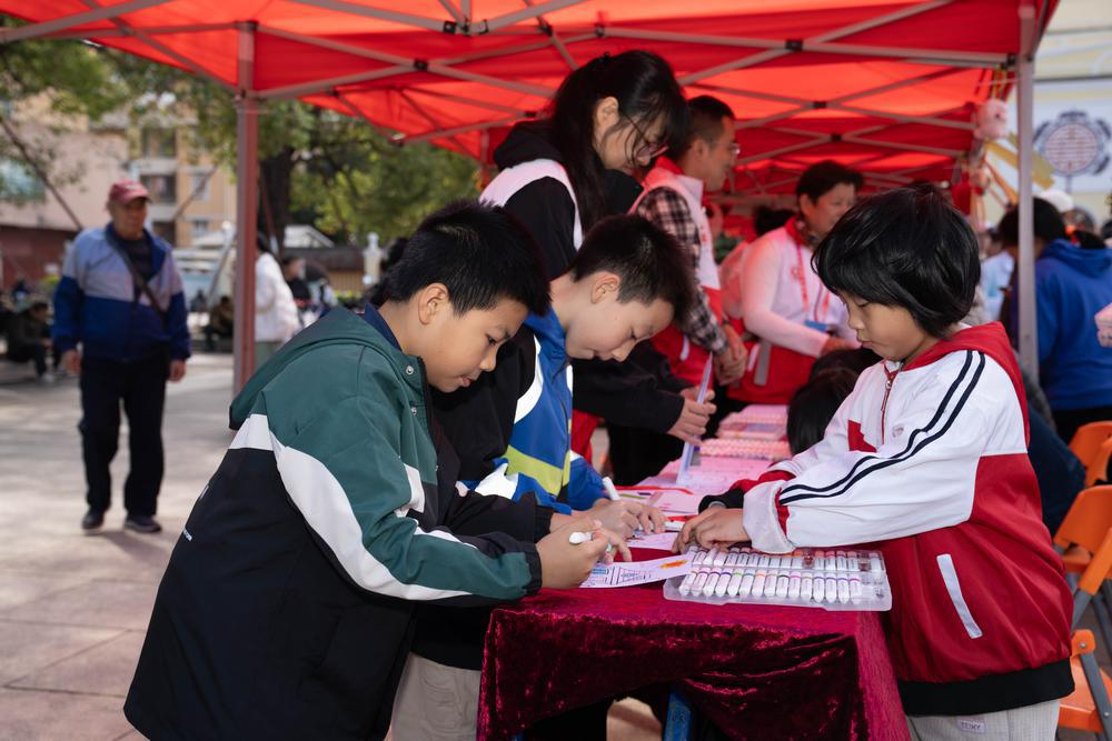 在舞台以外,活动主办方设置多个文化互动摊位,供市民群众动手体验,书法、中国结、创意设计等内容吸引了众多市民驻足尝试,通过沉浸式体验,将文化从静态的观赏对象转化为可参与、可创造的动态实践,实现文化在指尖的活态传承。在书法体验区,书法老师热情指导着市民在宣纸上挥毫泼墨,毛笔成为连接千年文脉与当代盛会的桥梁,“激情全运会 活力大湾区”“为你,更精彩”……一幅幅书法作品传递着群众对全运盛会的热情和自豪。”创意设计摊位,大学生志愿者通过胶带贴出运动标识,简单又有趣。现场还设有海珠文商旅推介区,志愿者向市民发放《海珠全运文旅志愿服务地图》,文旅志愿服务地图将海珠区的文化资源、旅游路线与热门商业区有机串联,让市民游客手持一份地图,就能开启一段“文商旅”深度融合的城市探索之旅。