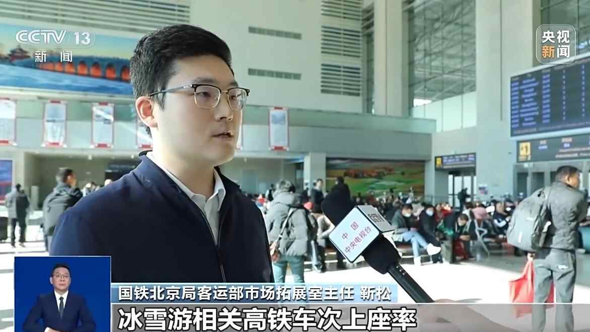 国铁北京局客运部市场拓展室主任 靳松:目前,京津冀地区前往东北的冰雪游相关高铁车次上座率较去年同期提升9.5%,京津冀至崇礼方向周末高铁客流同比增长11.2%。我们正与地方文旅部门、雪场合作,研究“车票+雪场套票”等新产品,进一步激活冬季旅游市场潜力。
