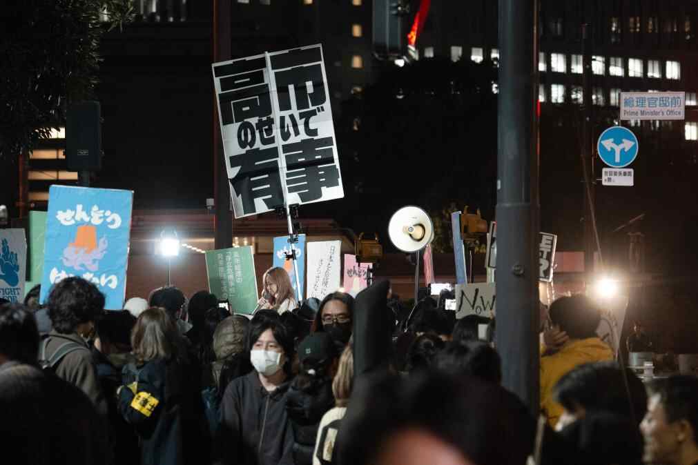 数百名日本民众21日晚在位于东京的首相官邸前举行集会,抗议日本首相高市早苗近日在国会发表的涉台错误言论,要求其撤回相关表态并作出解释和道歉。新华社记者贾浩成摄