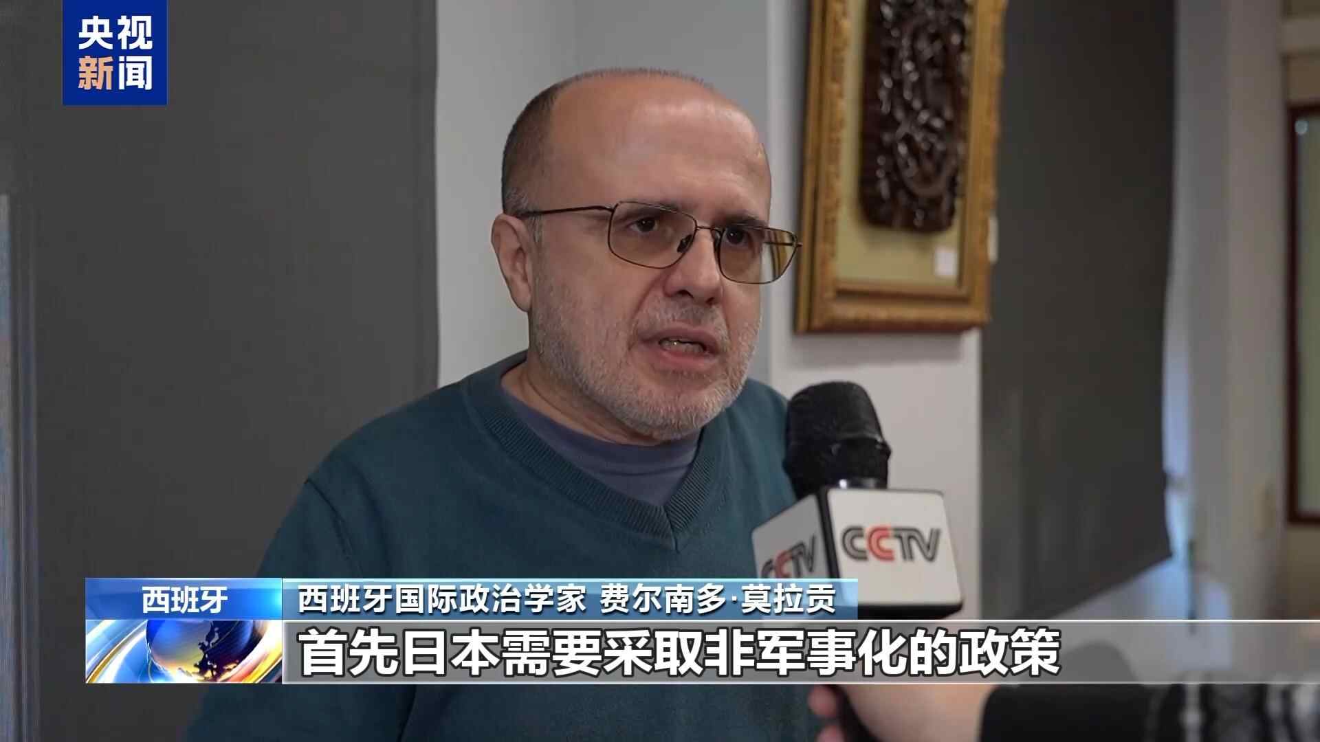 西班牙国际政治学家 费尔南多·莫拉贡:首先日本需要采取非军事化的政策,也就是说,需要维持对外的友好往来。因为这也符合日本的根本利益,日本需要将中国视作重要贸易伙伴,同时也要和韩国和东南亚各国维持和平往来,不再重复历史上犯过的错误。