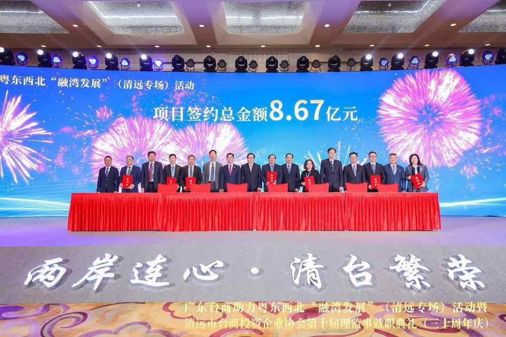 11月21日至22日,广东台商助力粤东粤西粤北“融湾发展”(清远专场)活动在清远举行,近600位台商代表齐聚一堂,共叙情谊、共谋合作、共话发展。活动现场,多个台商投资项目现场签约,涵盖电子、制鞋、汽车零组件等领域,签约金额近9亿元人民币。