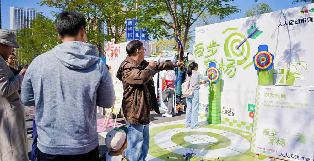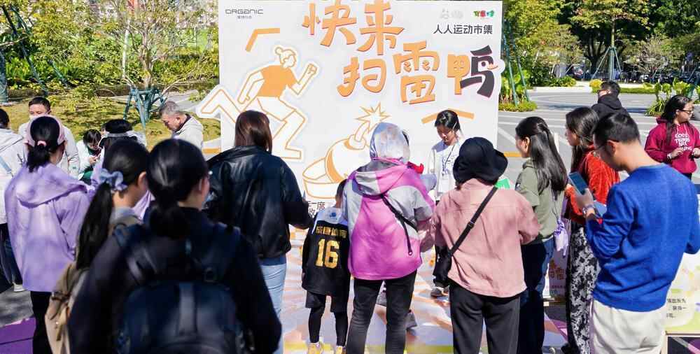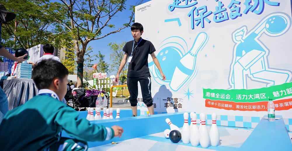 其中,“人人来玩运动市集”融合了运动体验和生活娱乐,设置了摸高挑战、扫雷达人、百步穿杨、翻滚吧保龄球、足球九宫格等项目,并结合车尾厢市集和好邻居理想生活市集,汇聚美食、文创、互动游戏,打造“吃喝玩乐一站式”体验。