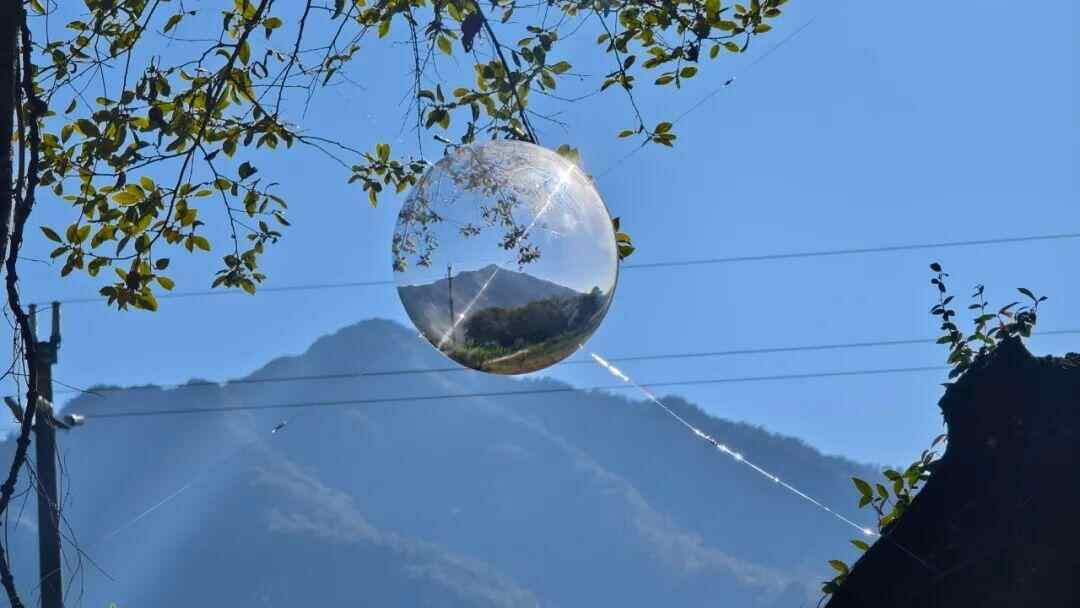 下午要了一辆电驴,到处跑,这看看那看看,看看各个作品都完成得怎么样了,问需不需要帮忙。帮杨青、陈博文、文慧搞他们的《栖望》,协助着把“大眼睛”弄到柱子上。这样的“大眼睛”有四个,都安装在电线杆上。我说可谓“翁城之眼”。也帮陈意、泳欣把她们的一面镜子捆扎于甘蔗林。这组作品极纯粹,其中老106国道旁的一组尤为惊艳,如另一个虚幻世界突然冒了出来。五面镜子和地平线平行,居然是通过好多鱼线串起来的,它们微微颤动,虚幻世界益增其虚幻不定。
