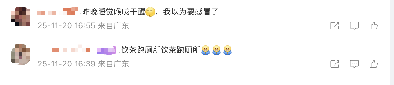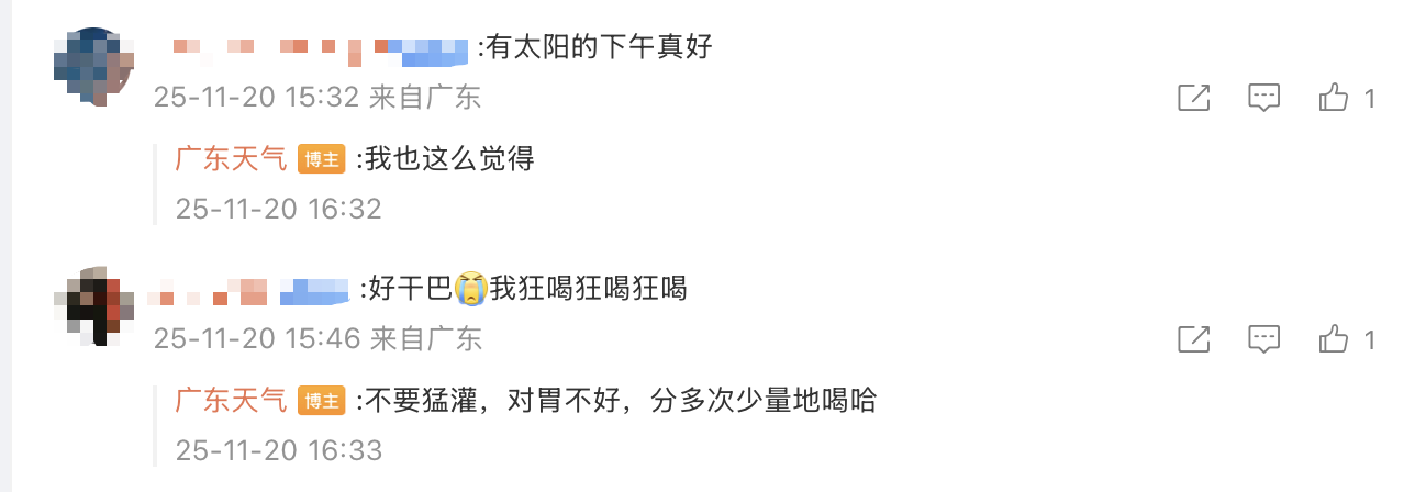 不少网友留言表示:天气十分干燥,睡觉喉咙都干醒了;皮肤都感觉干巴巴的。