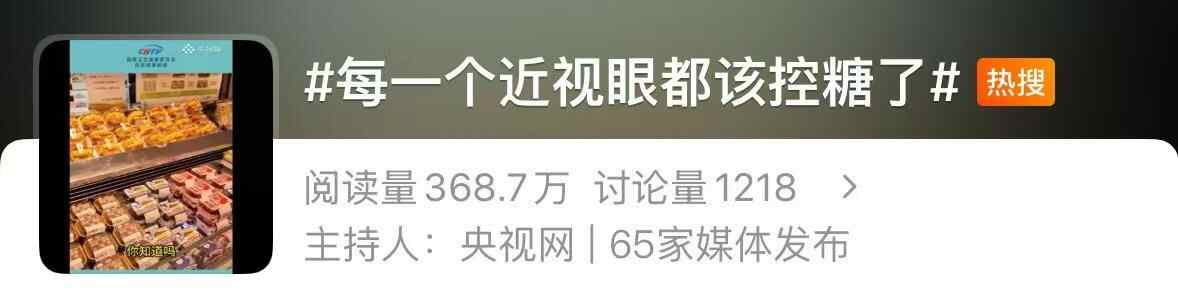 近日,“每一个近视眼都该控糖了”这一话题登上热搜并引发网友讨论。