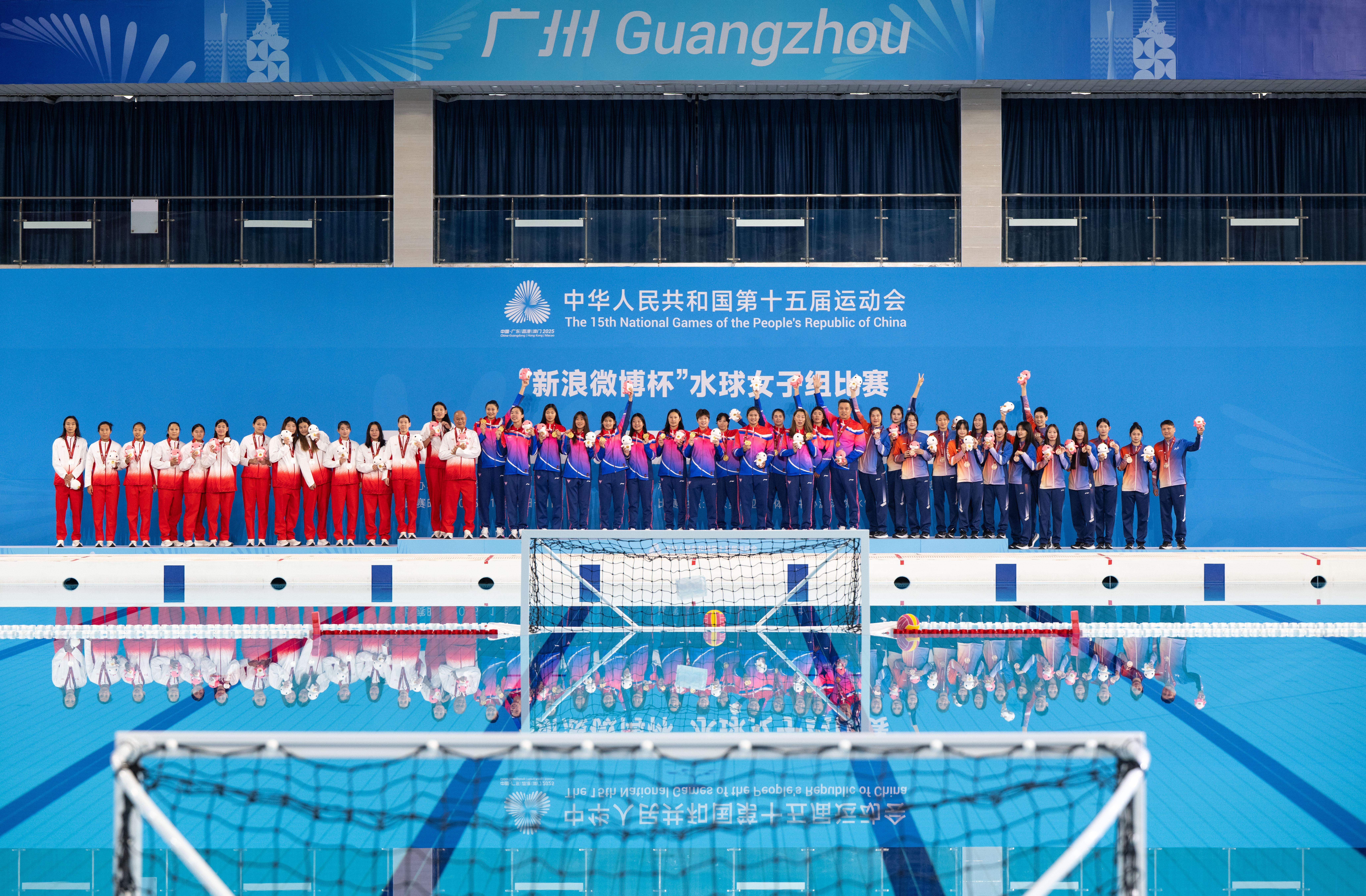 11月21日,第十五届全国运动会水球项目女子组决赛在广东奥体中心展开角逐,经过紧张激烈的比拼,上海队以出色的表现夺得金牌,天津队获得银牌,广西队获得铜牌。