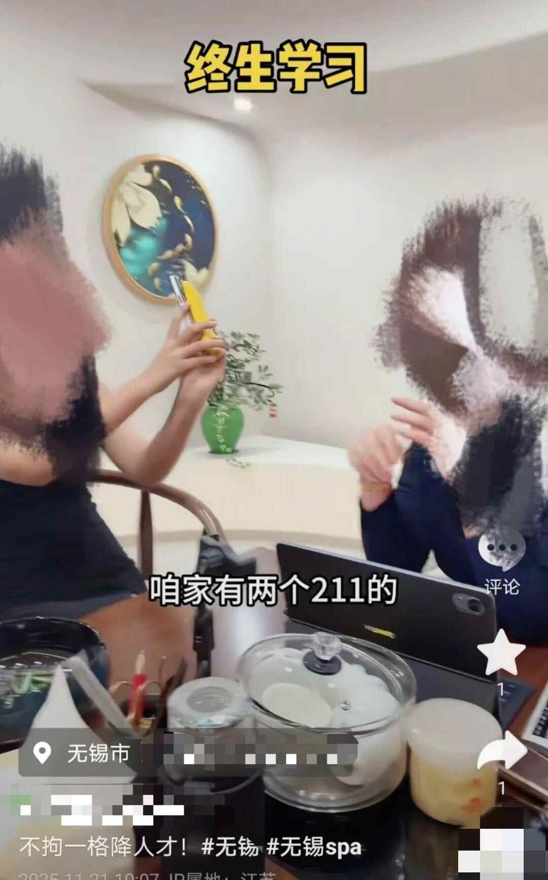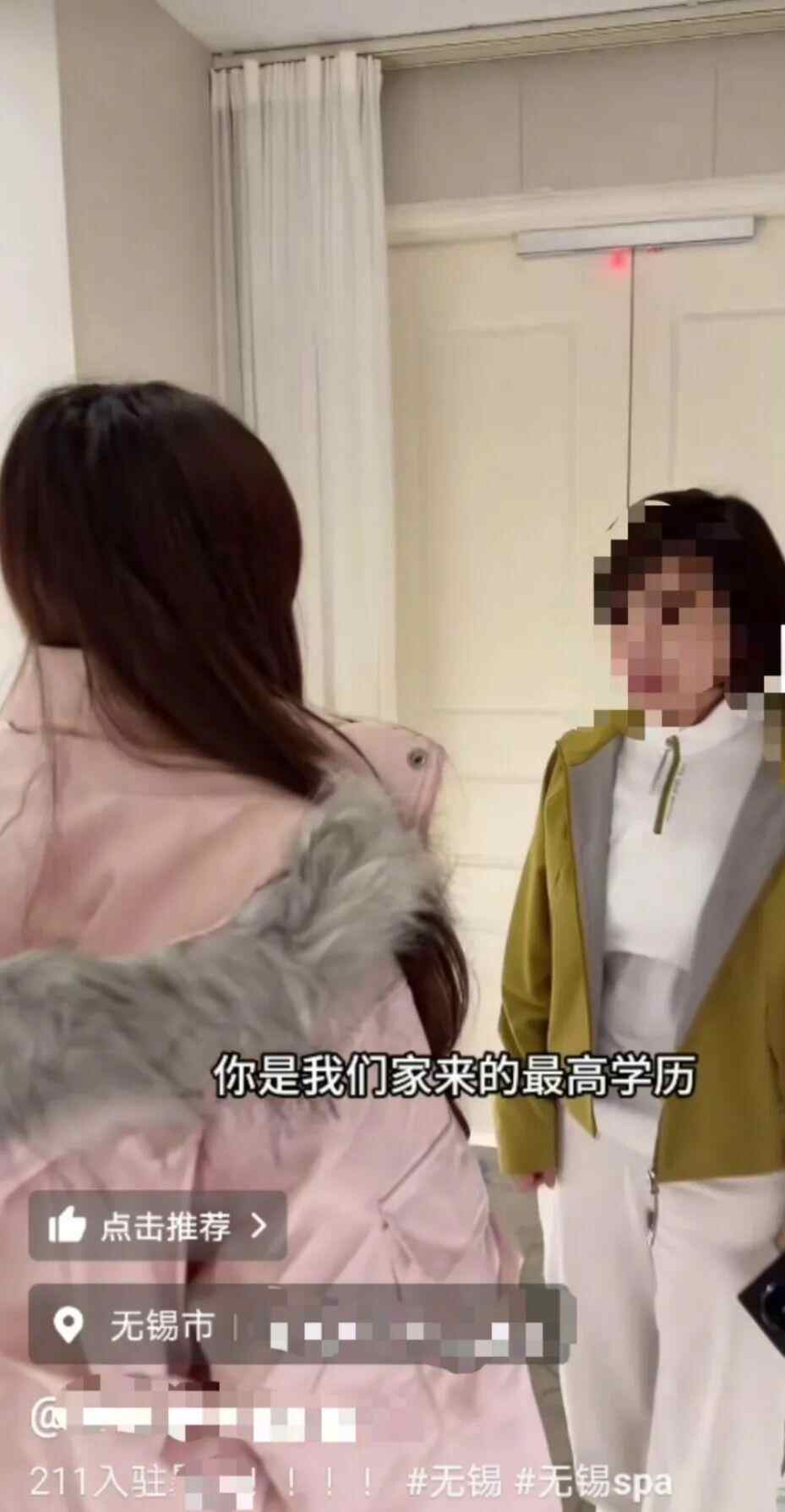 近日,江苏无锡一足疗店社交账号发视频,一名女性拍摄者对着一女生的背面介绍,“这是店里招的第一个本科生,还是211的。其他人大多是初中毕业,自己也是初中毕业。”