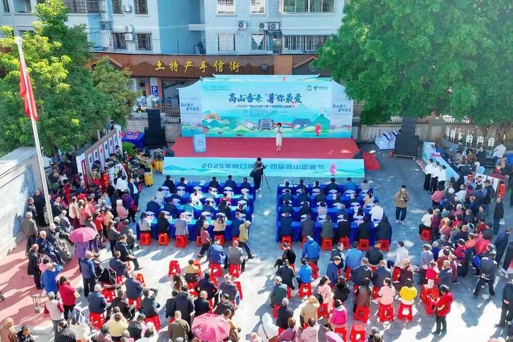 番薯节期间,主会场人头攒动,高山番薯、五指毛桃、七彩花生等特色农产品琳琅满目。大广高速志愿者服务队在现场开展“云端薯香·爱心助农”直播活动,通过抖音、视频号等平台实时推介良口高山番薯;良口镇社工服务站在现场设立“爱心助销专区”,帮助特困家庭销售高山番薯。