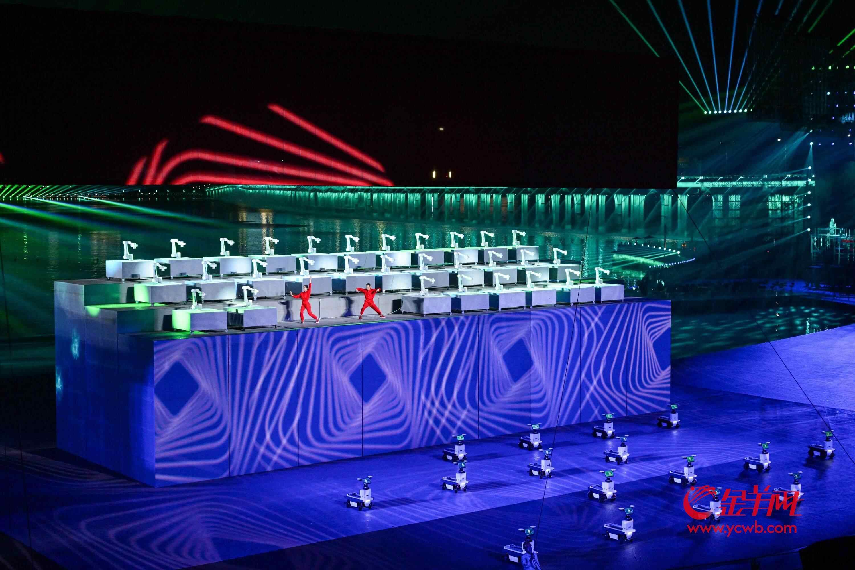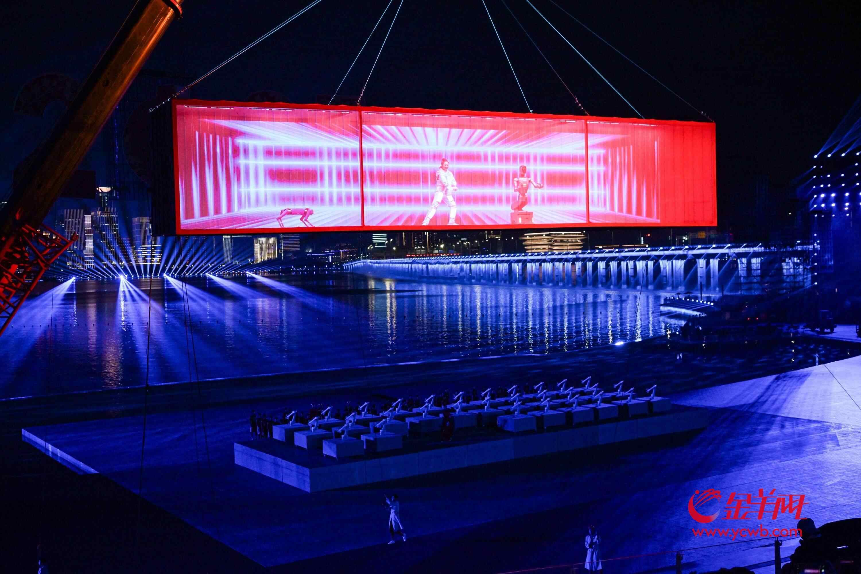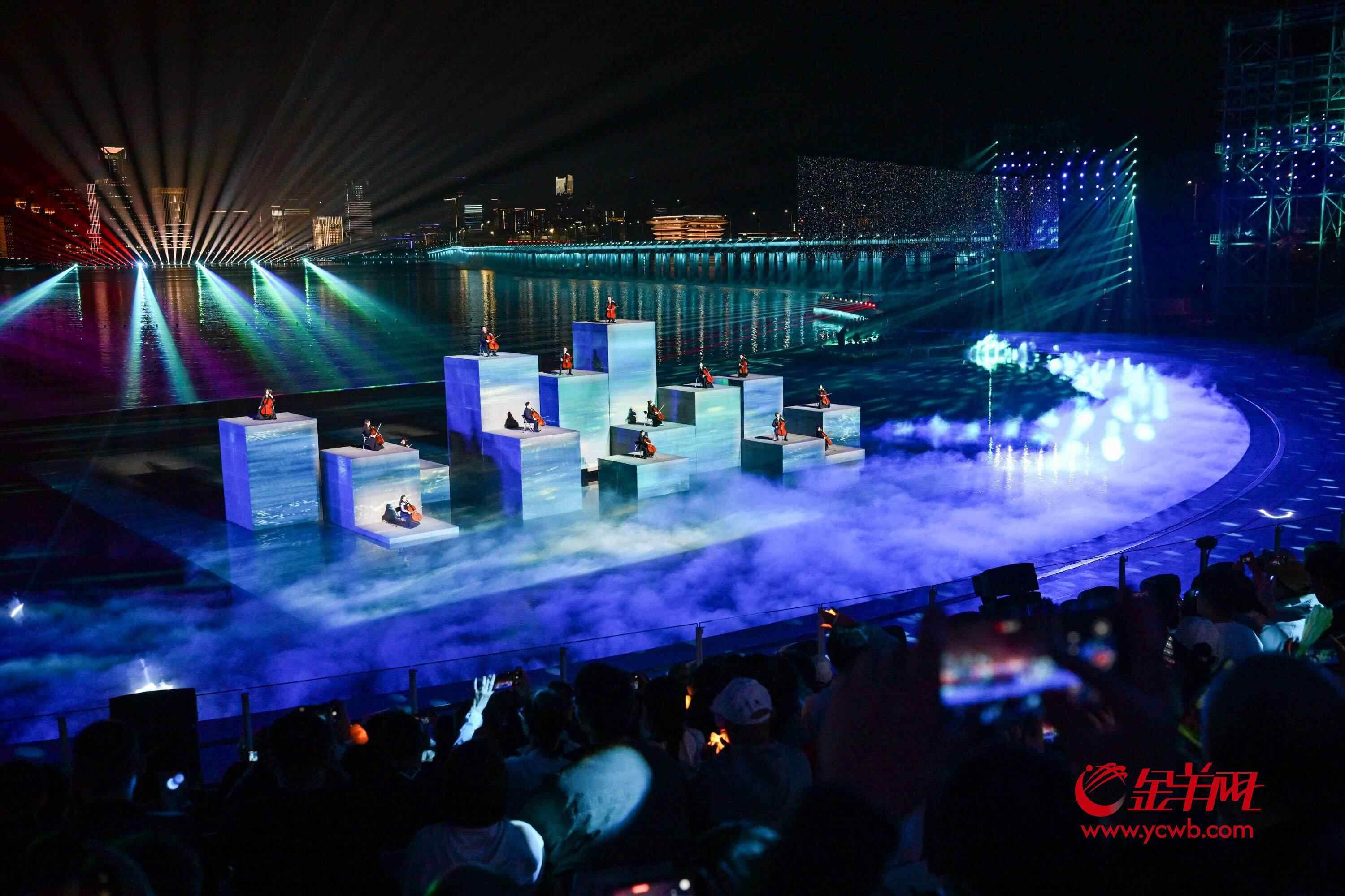 以海天为幕,以城市为景,本次闭幕式打破传统框架,选址于海滨实景舞台,展现了深圳的改革创新精神。闭幕式舞台从海水中缓缓升起,又最终隐入水中,如同一张徐徐展开又悄然合拢的“白纸”,将粤港澳大湾区的文化底蕴与时代精神绘于其上。