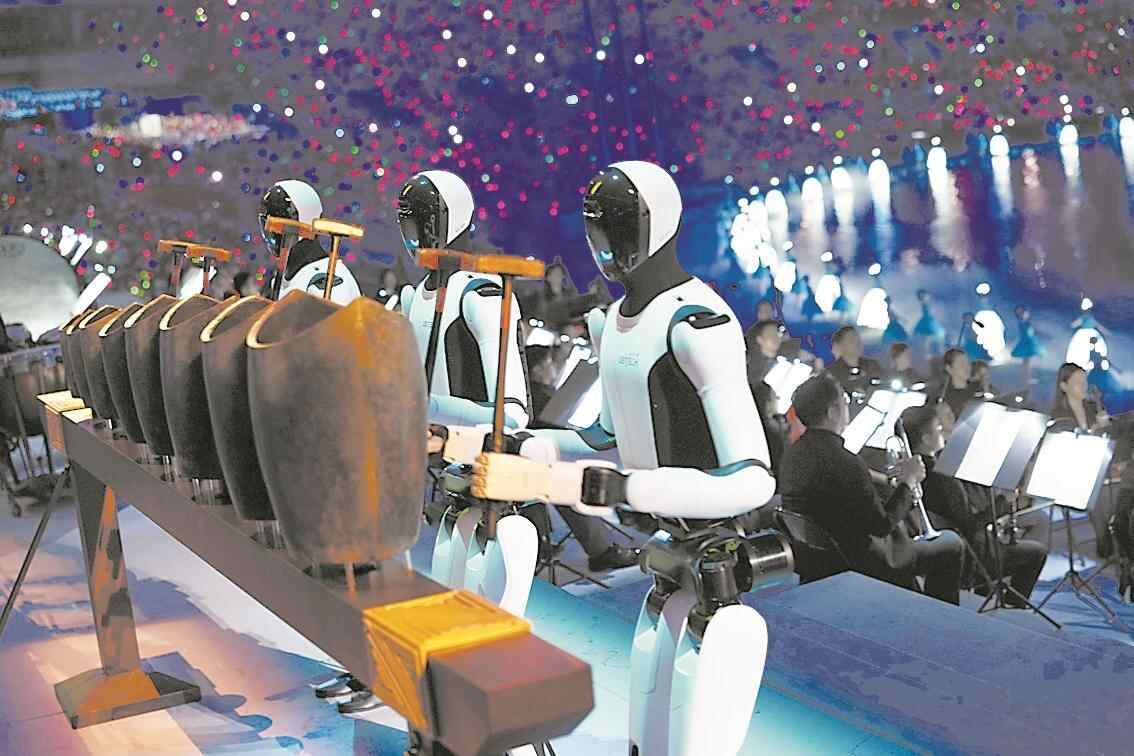 在第十五届全国运动会开幕式上,来自广东企业优必选科技的工业人形机器人整齐划一挥动机械臂,精准敲响“青铜句鑃”(广州南越王墓出土的8件战国青铜句鑃仿制品),悠扬的鸣响震撼全场。历史与未来,现代科技与传统文化,在此刻奏出和谐共鸣。