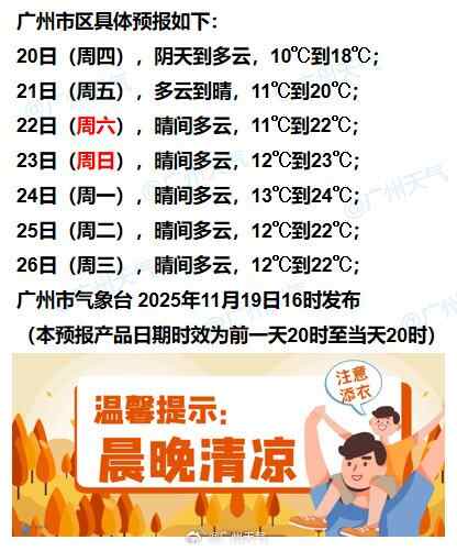 预计,20-22日,广东自北向南先后转晴天,白天最高气温逐渐回升,昼夜温差加大。