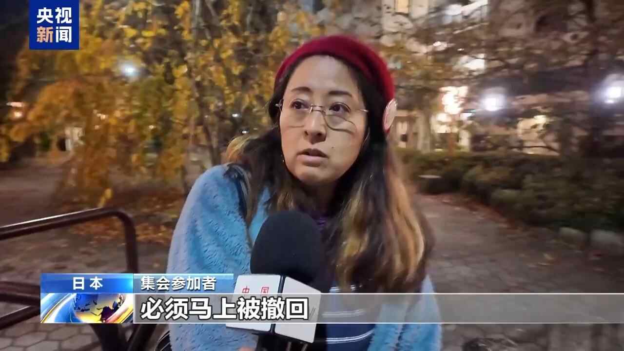 集会参加者:我当然认为高市应该撤回错误言论。对于国民来说,这绝对是不应该出现的首相发言,我认为这是违反宪法的。