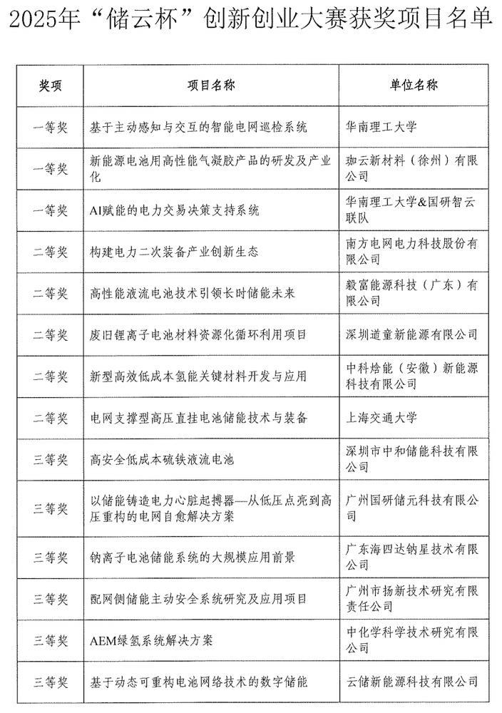 11月20日,广州市白云区2025年“储云杯”创新创业大赛颁奖大会在广州白云国际会议中心国际会堂举行,白云区通过“颁奖+政策+产业+孵化”的多维联动模式,推进打造千亿级新型储能产业集群。