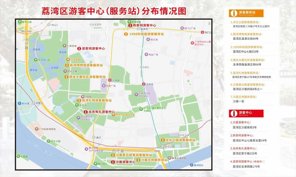 据悉,荔湾区已升级游客服务体系,在各大文商旅地标开设了游客中心(服务站)、行李寄存点,以全方位的便利服务帮助市民游客解锁“观赛+文旅”体验,让市民游客轻松无忧地感受荔湾之旅。