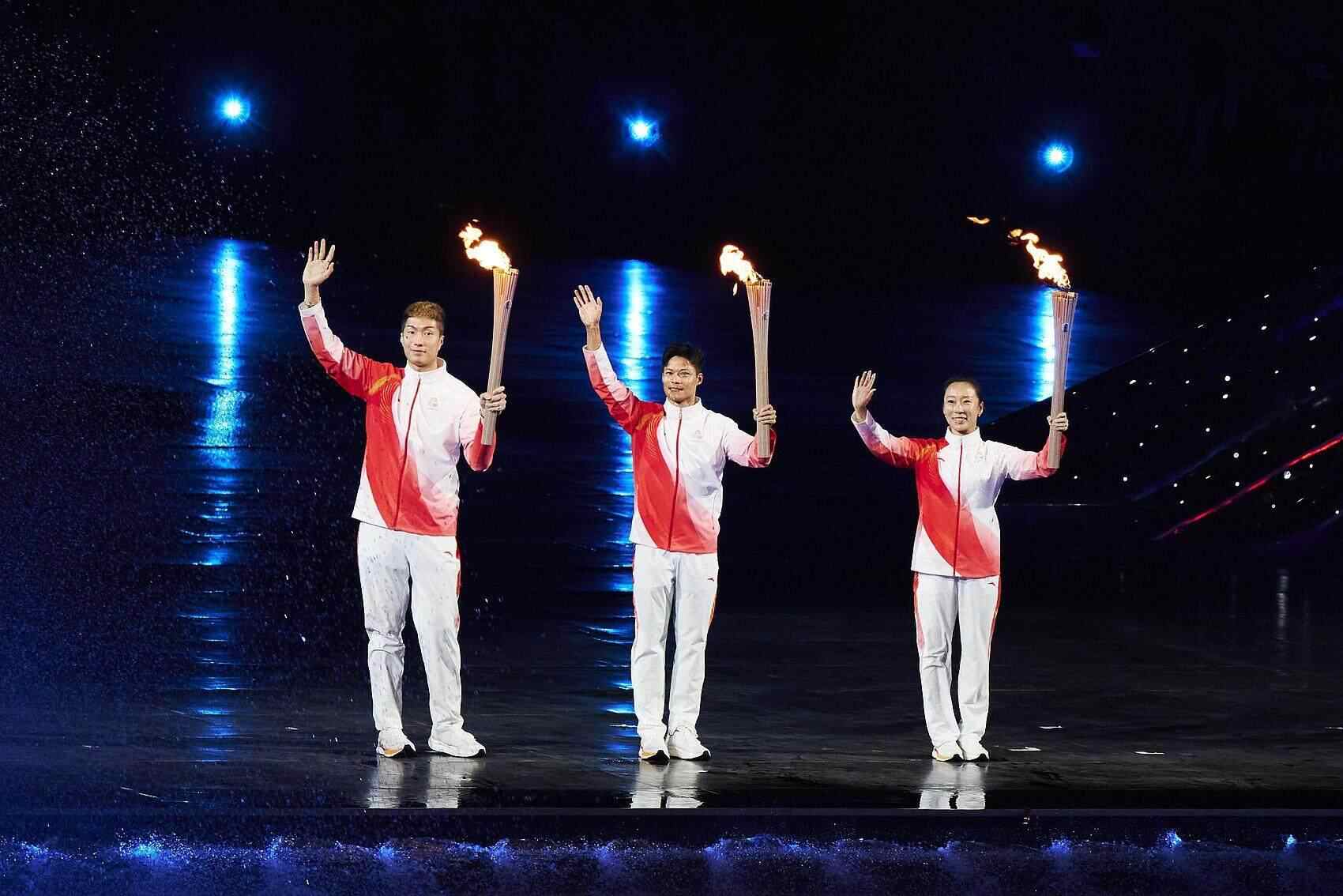 习惯性地丈量尺寸,绽放出标志性地微笑,目光如炬地望向前方……发令枪响,在数万名观众的见证下,弹射而出的第一棒苏炳添最后一次在赛道上迎风飞驰,顺利将手中的接力棒交给21岁的广东短跑新星刘洪熙。这一刻,不仅是“亚洲飞人”传奇体育人生的落幕,更见证了广东短跑的一路传承与生生不息。终点线上,苏炳添目视陪伴自己18年的跑道,此时主火炬塔“天海之冠”燃起的“同心圆”圣火恰如其分地成为背景墙,映射出“苏神”圆满的职业生涯,他为中国短跑点燃的希望之火,照亮了每一个追梦人前行的路。