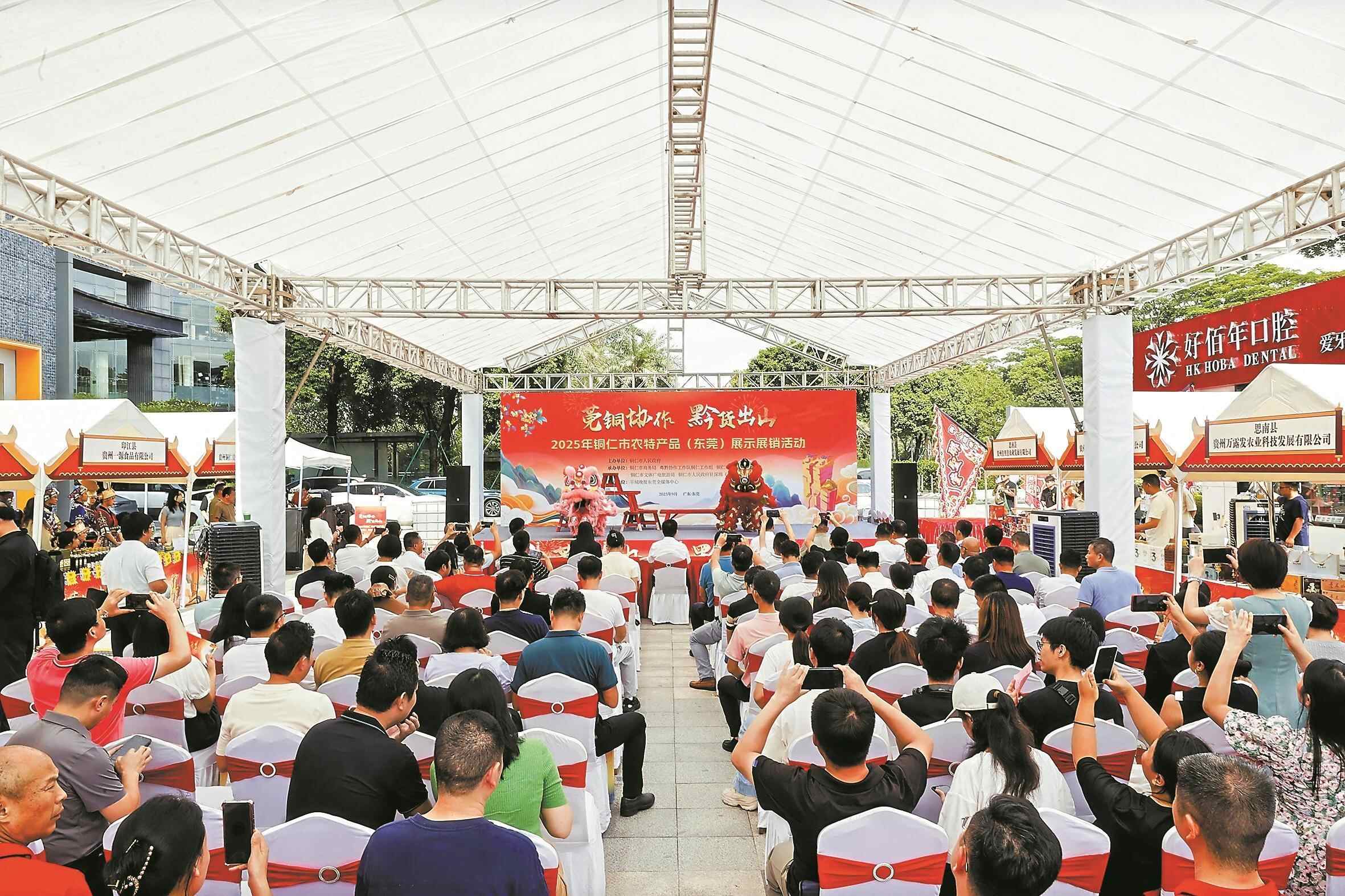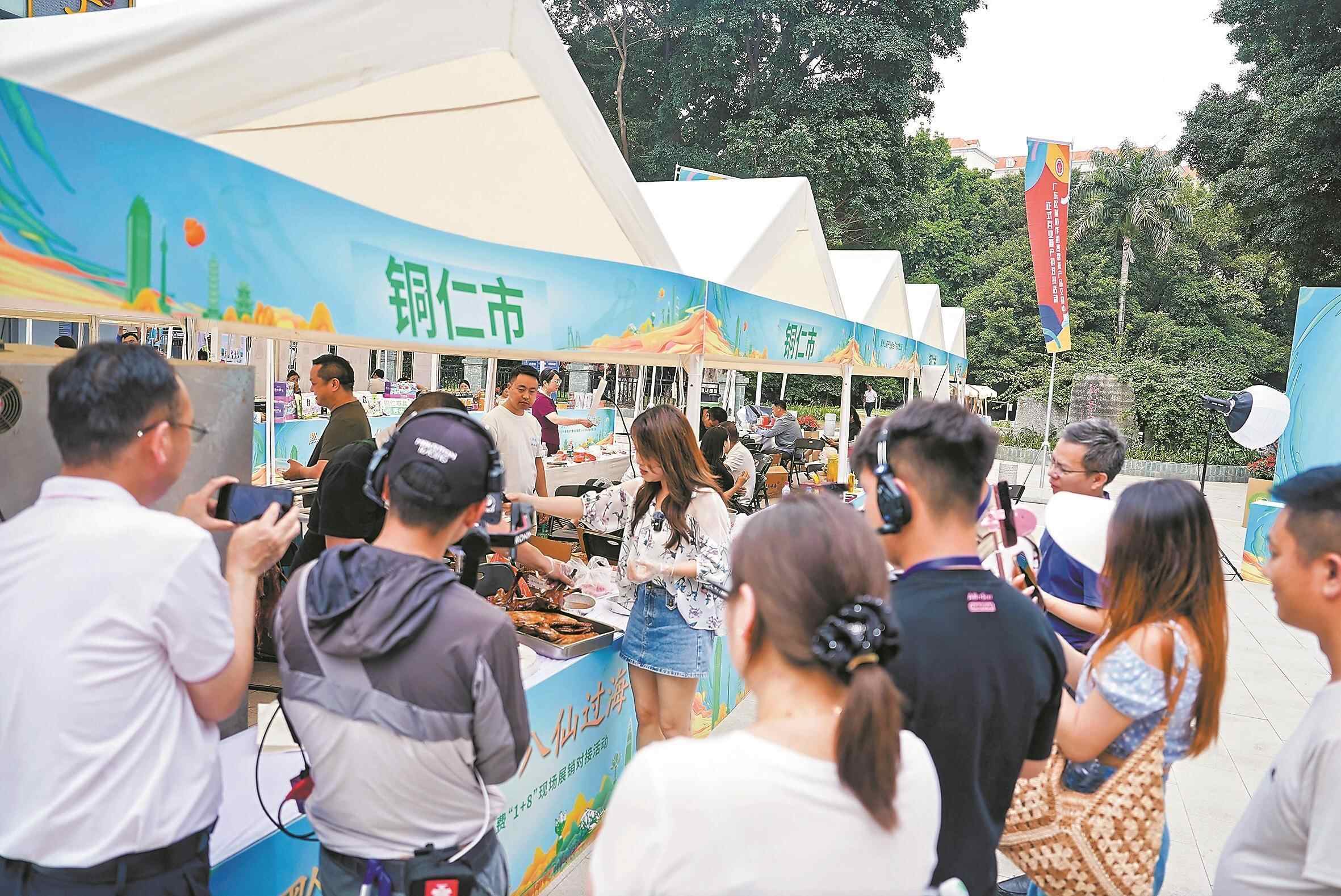 依托粤港澳大湾区重要节点城市的区位优势,今年以来,羊城晚报东莞全媒体中心用好融媒矩阵,发挥传播优势,举办“风起山海·铜仁谢礼”系列农特产品展销会十余场,通过多平台同步直播、线上线下联动,相关活动累计吸引参与人次突破35万,有效扩大活动覆盖面与影响力。
