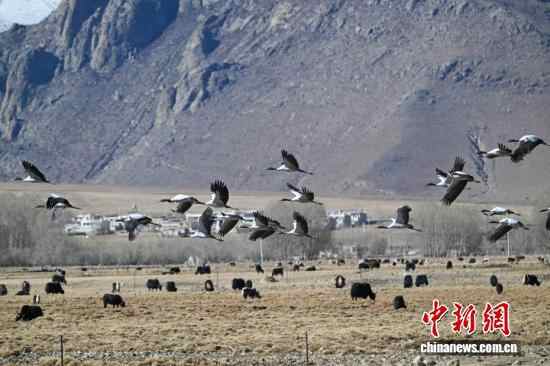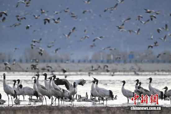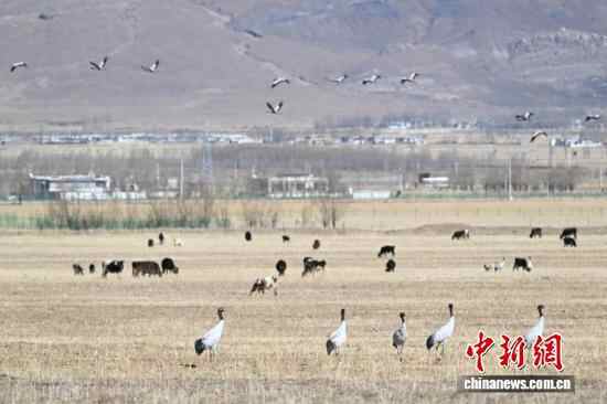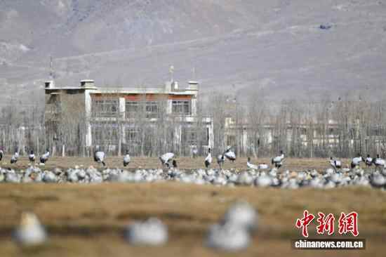 11月26日,位于西藏自治区拉萨市林周县的黑颈鹤自然保护区内,大量越冬的黑颈鹤在卡孜水库、农田、湿地里觅食、嬉戏。林周县位于拉萨河上游及澎波河流域,是黑颈鹤的主要越冬地之一。