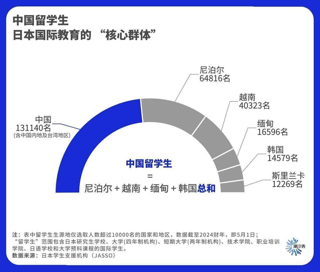 这意味着中国是日本最大的海外生源国之一,数量甚至超过了许多国家本土在日本的学生总数。