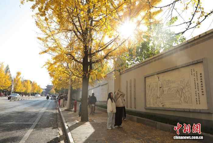 11月26日,湖北武汉,武昌首义路至起义门沿线路段上的银杏树枝叶交织,在阳光下熠熠生辉,宛如一片金色的海洋,吸引了众多市民来此拍照留影,享受深秋暖阳。中新社记者 郑子颜 摄