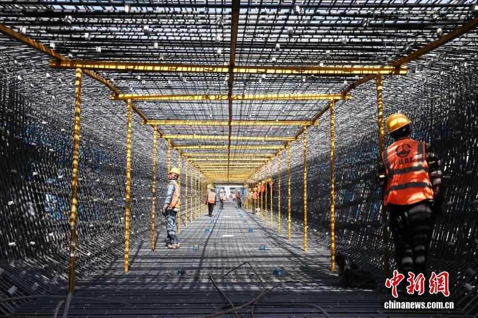 11月26日,在漳汕高铁福建段东山跨海特大桥施工现场,随着一榀重达数百吨的箱梁精准安放在桥墩上,标志着漳汕高铁全线进入跨海大桥架梁施工阶段。此次完成首榀箱梁架设的东山跨海特大桥全长20.26公里,是漳汕高铁全线最长的跨海桥梁。图为在漳汕高铁东山制梁场,施工人员正在绑扎桥梁钢筋。