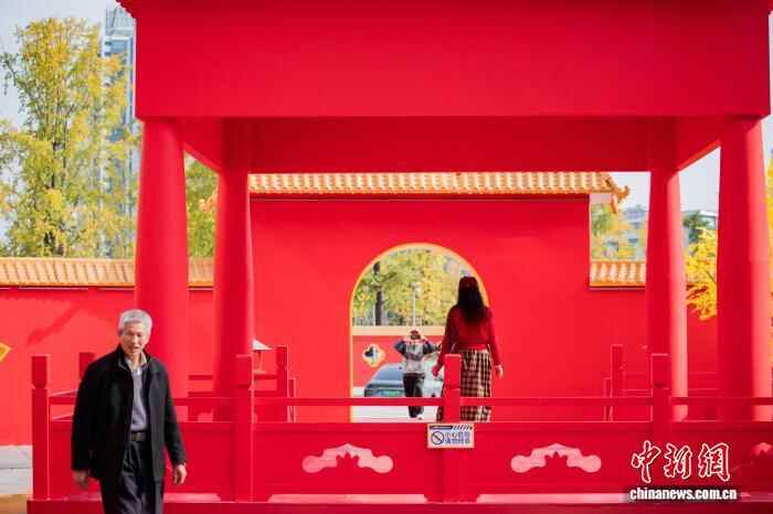 重庆:80米长“红墙限定皮肤”点缀城市 市民游客争相“打卡”